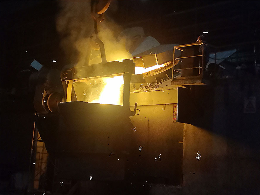 浇铸现场,电炉内铁水沸腾,倾泻时溅起簇簇火花,宛如漫天星光,划破夜色,