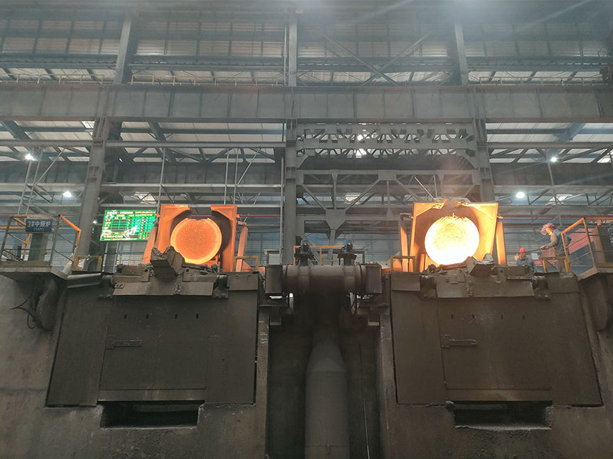 大型铸造车间内,一座20吨一拖二电炉顺利投产!这标志着宝山基地已具备单件200吨大型铸件的生产能力,